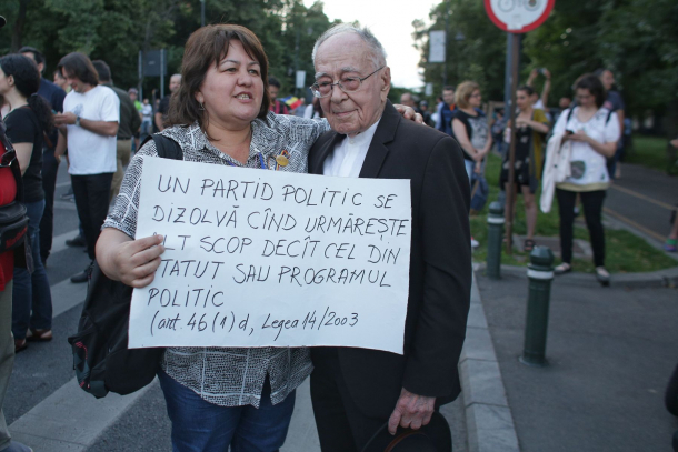 Filosoful Mihai Şora a participat, duminică, la protestul antiguvernamental din Piaţa Victoriei.