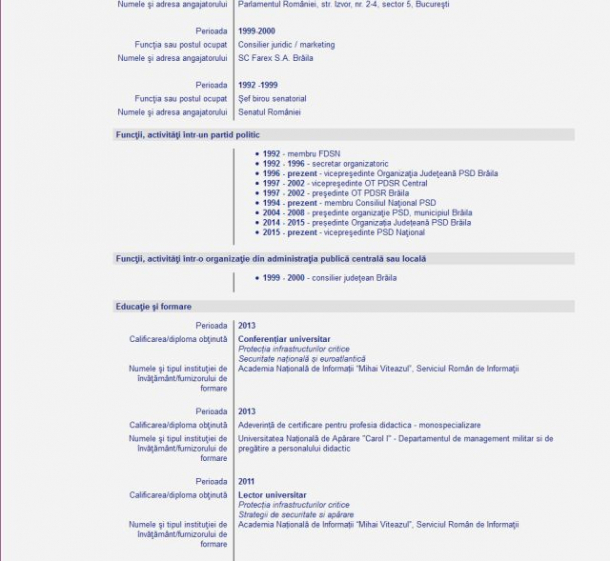 Potrivit acestuia, în perioada 2011-2013 ar fi fost lector și apoi conferențiar universitar la Academia Națională de Informații a SRI.