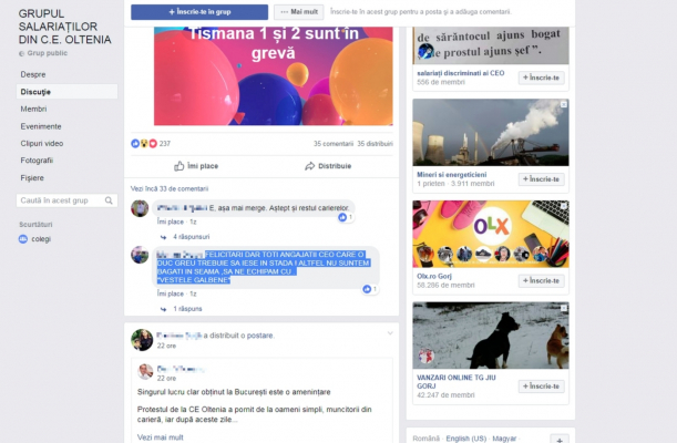 „Felicitări, dar toţi angajaţii CEO care o duc greu trebuie ă iasă în stradă! Altfel nu suntem băgaţi în seamă, să ne echipăm cu ‘Vestele Galbene'”, este îndemnul unui internaut pe Facebook, după cum se poate vedea din imaginea de mai jos.