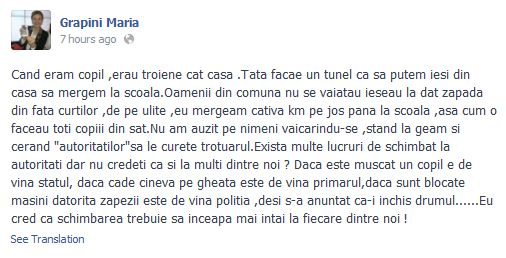 Ministrul Delegat pentru IMM-uri, Mediul de afaceri şi Turism, Maria Grapini, a postat un nou text plin de greşeli pe pagina sa de Facebook. Greşelile gramaticale apar într-un comentariu legat de iernile copilăriei. Aceasta nu este însă prima gafă de acest gen pe care Grapini o face pe reţelele de socializare.