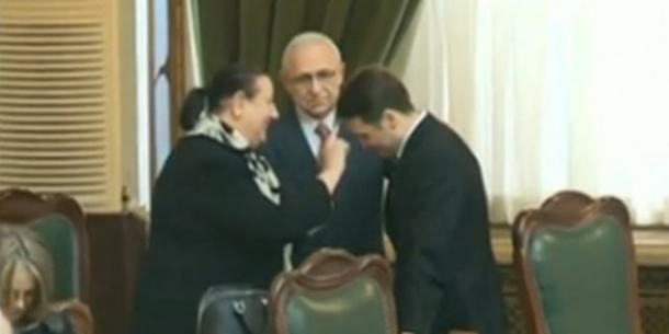 Scena mirului devine ceva obișnuit în Senat. Dacă Varujan Vosganian a venit el însuşi cu mirul, în cazul lui Dan Şova acesta a fost adus de colega sa, fostă judecătoare la Tribunalul București, Florina Jipa. Înainte de votul prin care s-a respins cererea de arestare a fostului ministru, Jipa a făcut cruci cu mir pe fruntea, creştetul şi mâinile lui Şova.