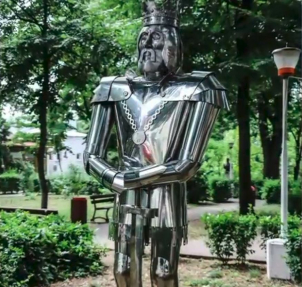 O statuie din inox a domnitorului Mircea cel Bătrân a stârnit vii controverse pe internet după ce a fost expusă într-un parc din Municipiul Giurgiu.
