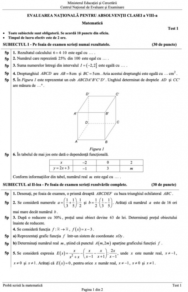 Modele de subiecte pentru Evaluarea Națională și Bacalaureat. Teste de antrenament, publicate de Ministerul Educației