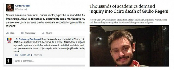 În emisiuneile Antenei 3 s-a spus că poza de profil a celui care i-a pus întrebarea ambasadorului american despre postul familiei Voiculescu ar fi,de fapt, a unui student italian ucis la Cairo şi că profilul ar fi fals.