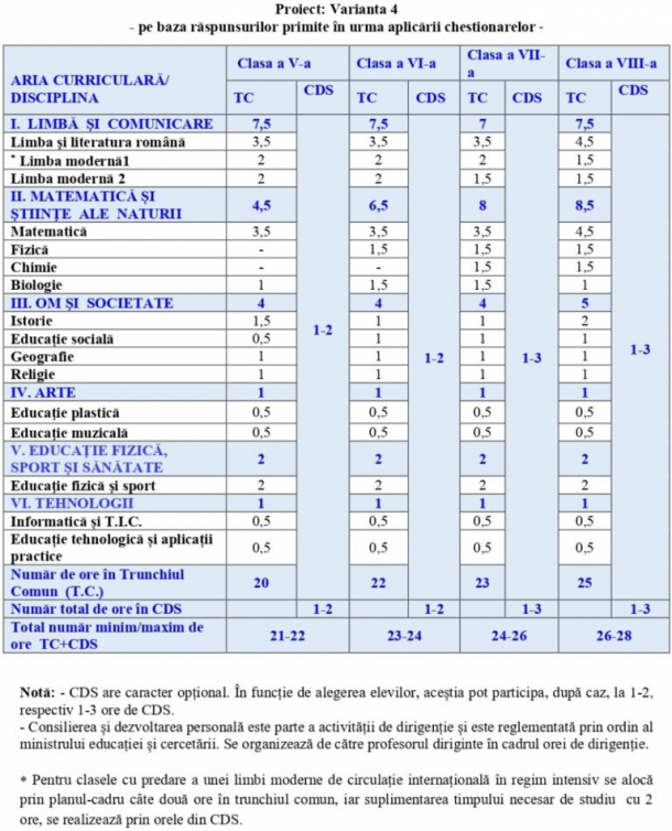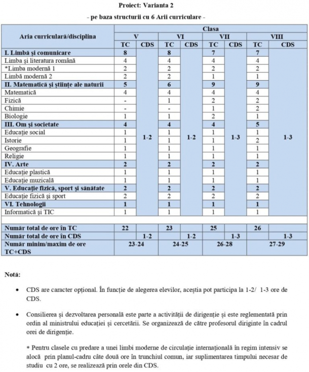 Și în această variantă, Religia rămâne ca materie obligatorie cu 1 oră pe săptămână din clasa a V-a până în clasa a VIII-a.
