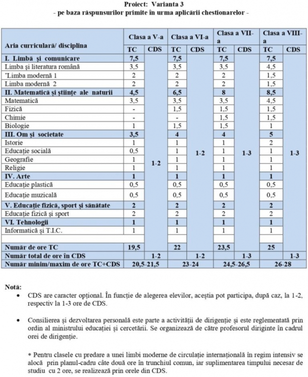 Planul-cadru pentru gimnaziu – Varianta 3