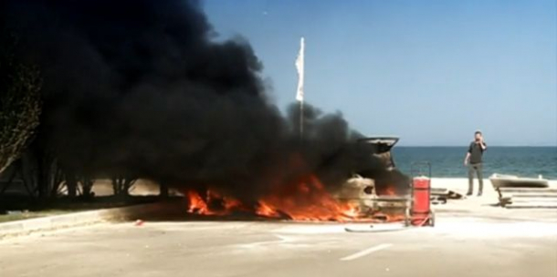 O mașină a ars ca o torță lângă un club din Mamaia (FOTO)