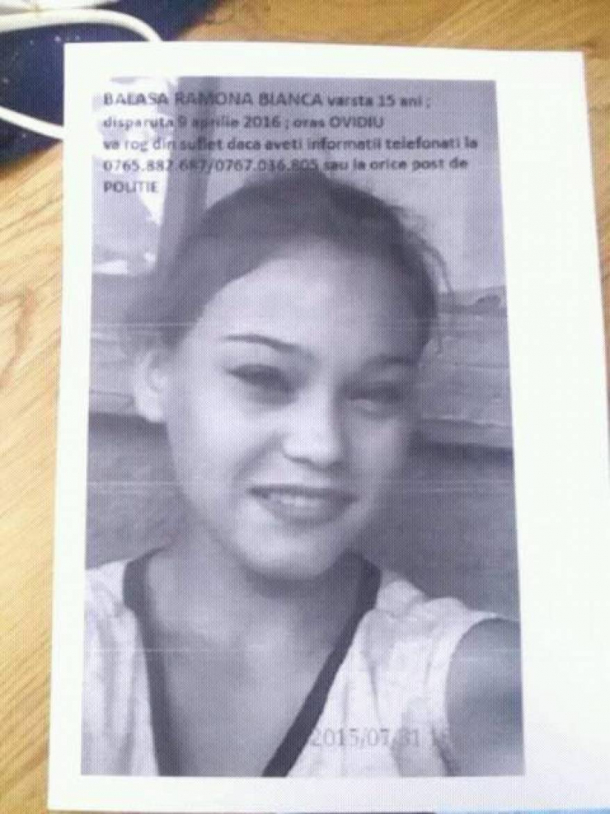 Balasa Ramona Bianca, o tânără în vârstă de 15 ani a dispărut din fața Căminului Cultural din Ovidiu, din Constanța, pe data de 9 aprilie. Familia a alertat autoritățile, însă nu a primit nicio veste până în acest moment, potrivit reporterntv.ro.