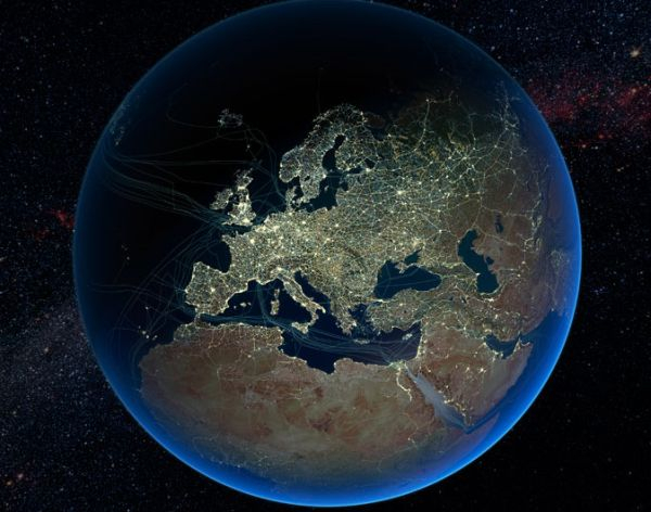 Liniile de electricitate, drumurile și traficul aerian care străbat Europa