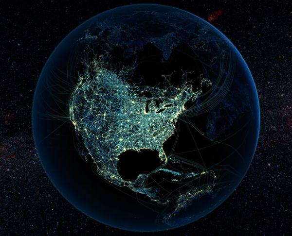 Un om de știință a realizat o serie de imagini care arată cum liniile de electricitate, drumurile și traficul aerian domină suprafața Pământului, potrivit cotidianului The Sun.