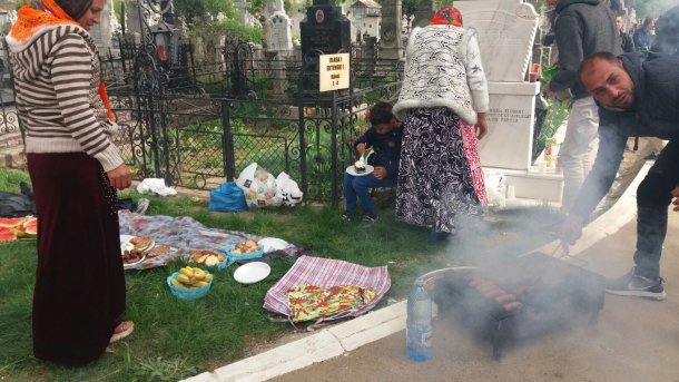 Grătarele au sfârâit mai ceva ca de 1 mai, iar mesele au fost întinse printre morminte, la cimitirul Viişoara din Ploieşti! Este obiceiul romilor de a sărbători Paştele Blajinilor, pentru a-i pomeni cum se cuvine pe cei morţi.