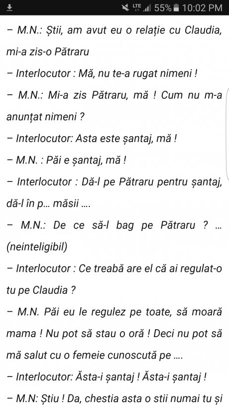 Redăm mai jos și interceptarea în care apare numele Pătraru.