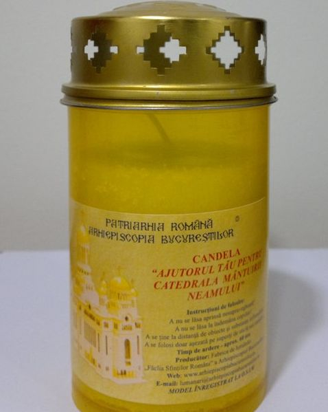 Patriarhia Română și Arhiepiscopia București au lansat pe piață o candelă galbenă numită “Ajutorul tău pentru Cadedrala Mântuirii Neamului”, cu ocazia sărbătorilor de Paște, ce vine în ajutorul tutuor credincioșilor, relatează Basilica.ro