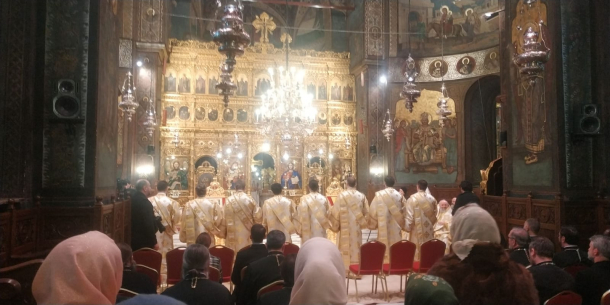 De dimineață, acesta săvârșește Liturghia, împreună cu un sobor de ierarhi, preoți și diaconi, în Catedrala patriarhală. Sute de credincioși sunt prezenți. Printre invitații speciali se numără și fostul principeNicolae.