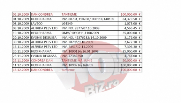 Afacerile lui Dan Condrea nu se rezumau la Hexi Pharma. Potrivit wowbiz.ro, acesta a scos milioane de euro din conturile a doua offshore-uri din Cipru. Nu se știe dacă banii au rămas la el sau nu, dar sursa citată a intrat în posesia unor documente care atestă faptul că, începând cu primăvara anului 2008, Condrea și-a plătit singur sume cuprinse între 20.000 și 100.000 de euro, atât pentru el, cât și pentru tatăl lui, cu titlu de onorariu lunar.