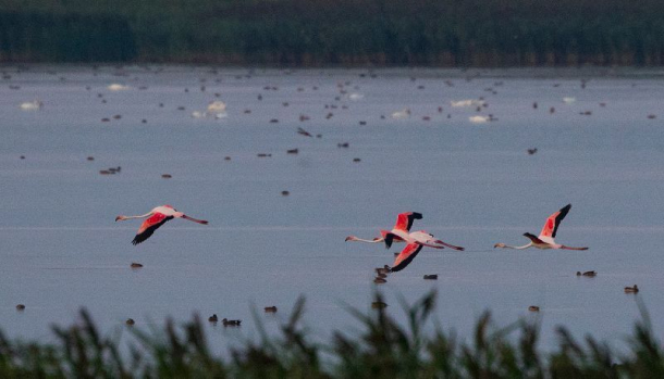 Patru păsări Flamingo au fost fotografiate în Delta Dunării (FOTO)