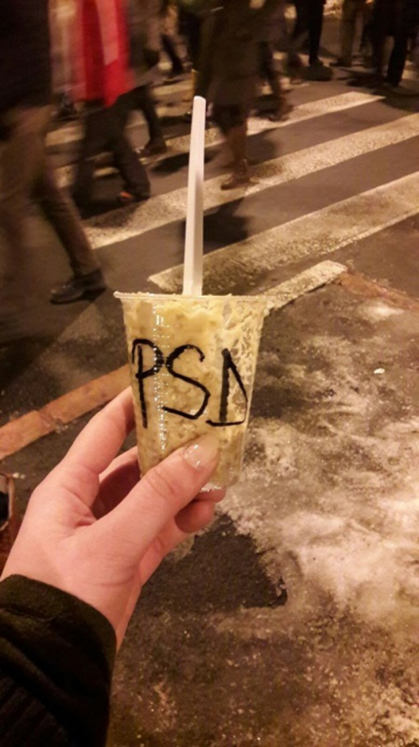 Aceasta a împărțit în piață 50 de colivă pe care era scris cu markerul PSD. ”În toată supărarea trebuie să facem şi un pic de haz de necaz", a spus tânăra, care a povestit că bunica ei a făcut coliva ajutată de vecini, potrivit stiripesurse.ro.