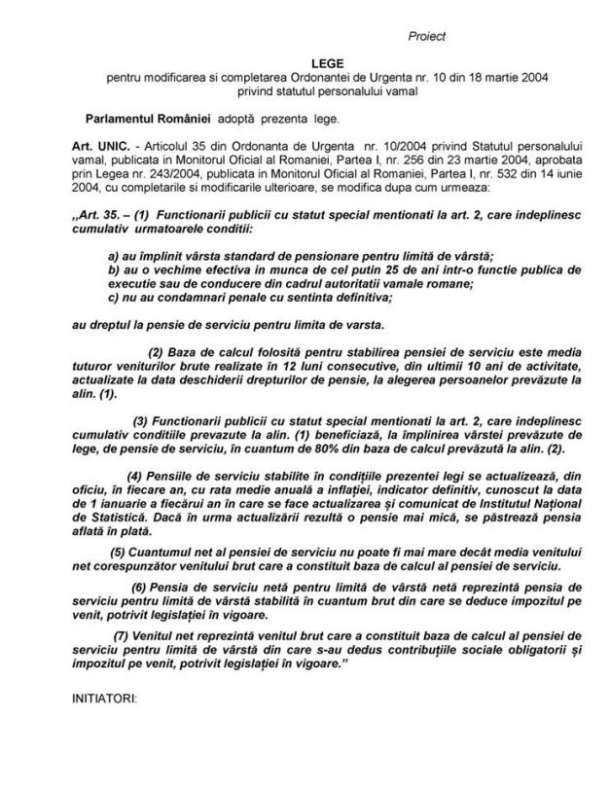 Astfel, proiectul publicat de acesta arată că se va acorda o pensie de serviciu personalului vamal cu statul special care îndeplineşte mai multe condiţii, scrie adevărul.ro.