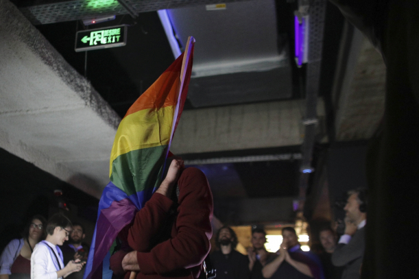 Mai mulți membri ai comunității LGBT s-au stâns în club ca să se bucure de faptul că în Constituție familia nu va fi redefinită ca „uniunea între un bărbat şi o femeie”, ci va rămâne ca până acum – „uniunea între soţi”.