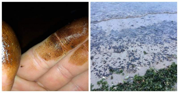 „În mare, în dreptul plajei Mangalia, apa este contaminată cu deșeuri petroliere. Fotografiile sunt de la turiştii care au ieșit din mare plini de pete și au reușit să le scoată doar cu spray degresant. Atenţie pentru copii!”, a scris un turist pe o rețea de socializare.