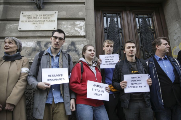 „Vrem să ne arătăm solidaritatea cu magistraţii care în aceste zile protestează împotriva abuzurilor la adresa justiţiei independente, promovate de OUG 7. În acest sens, îi chemăm pe toţi cei care au timp disponibil şi gândesc ca noi să ni se alăture într-un protest paşnic şi nezgomotos, joi, 7 martie, ora 12.00, în faţa intrării Facultății de Litere. Ne vom alinia în faţa intrării purtând pe braţ o brasardă albă şi vom rămâne acolo timp de aproximativ o oră. Vom încerca să tipărim şi câteva lozinci. E bine să fim cât mai mulţi”, a transmis şi decanul Facultăţii de Litere, Emil Ionescu.