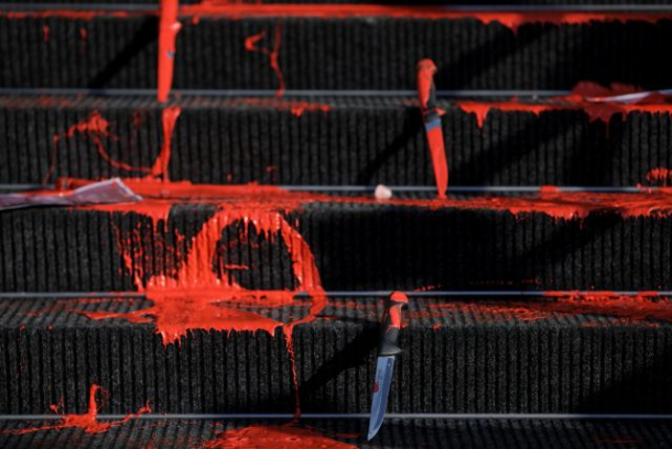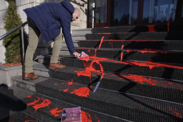 Protest ȘOCANT la Ministerul Justiției: Treptele instituției, murdărite cu VOPSEA ROȘIE, simbolizând sângele vărsat de puşcăriaşii eliberaţi în baza recursului compensatoriu (FOTO, VIDEO)