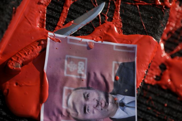 Protestatarii au aruncat cuţite şi poze cu ministrul Justiţiei, Tudorel Toader, pe care-l consideră principalul vinovat.