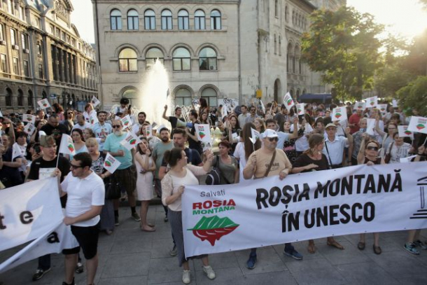 ”Am ieşit azi pentru faptul că Guvernul a scos şi a retras Roşia Montană din circuitul UNESCO şi nu este normal aşa ceva: fără şedinţă, înainte fără dezbateri publice, fără nicio informare. Eu ştiu că ei sunt chitiţi pe Roşia Montană şi vor să o acapareze. Este una dintre cele mai mari bogaţii ale lumii şi e stilul lor”, a spus un protestatar, pentru Mediafax.