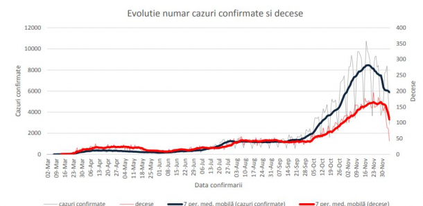 Datele centralizate arată că numărul infectărilor a fost constant în perioada martie – mai, apoi a scăzut până în august când a început o ușoară creștere. De la începutul lunii octombrie până în săptămâna 9-16 noiembrie, trendul infectărilor a fost constant crescător. În ultima săptămână analizată s-a constatat din nou o scădere.