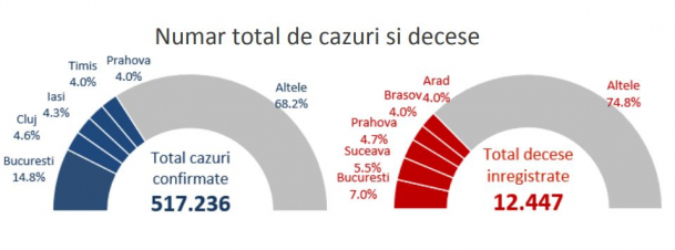 De la izbucnirea pandemiei de coronavirus și până la 29 noiembrie, un caz din 63 a fost înregistrat în rândul cadrelor medicale, 83,8% din totalul victimelor erau persoane de peste 60 ani, iar 59,3% dintre decese au fost la bărbaţi. 95,2% dintre victime aveau cel puţin o comorbiditate asociată.