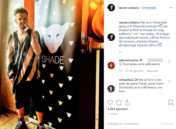 „Hai ca in ritmul asta ajung și la #hanuldrumetului # am început la #loft la #shade îmi trag sufletul și „om” mai vedea…”, scrisese ceatorul de modă pe contul său de Instagram.