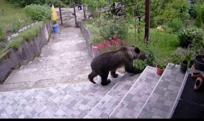 Urșii continuă să își facă apariția în gospodăriile oamenilor. Marți, în Săcele, lângă Brașov, o familie s-a trezit cu ursul la ușă.
