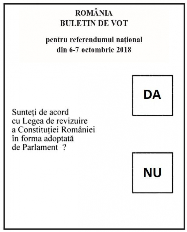 Aceștia vor trebui să răspundă cu ‘Da’ sau ‘Nu’ la întrebarea „Sunteţi de acord cu Legea de revizuire a Constituţiei României în forma adoptată de Parlament?”.