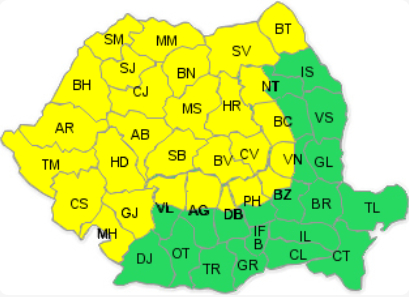 Meteorologii au emis un cod galben de instabilitate atmosferică accentuată pentru 28 de județe, valabil în perioada 27 iunie, ora 10.00 – 28 iunie, ora 10.00.