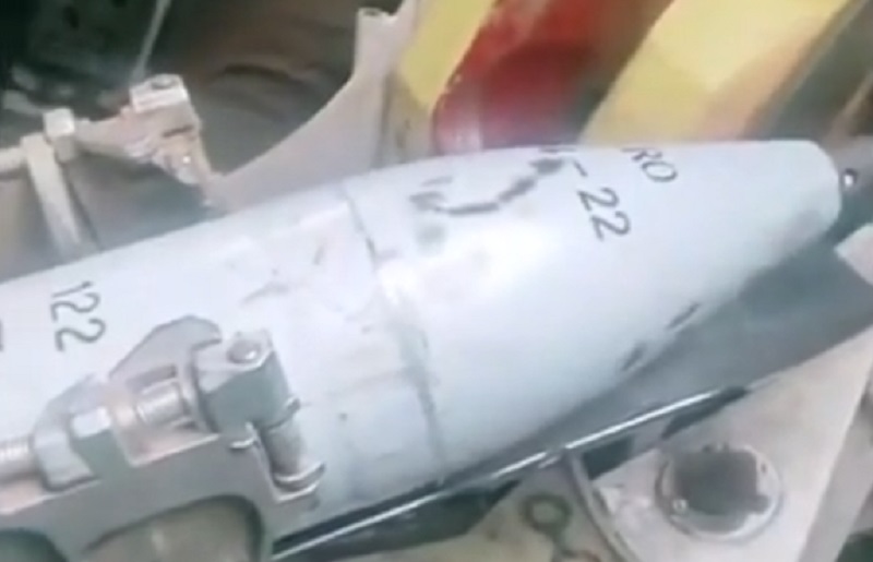 Se vede parţial seria acestui obuz şi prescurtarea RO. Interesant este că nimeni nu neagă faptul că ar fi întradevăr muniție românească trimisă în Ucraina, dar nici nu confirmă vreun oficial.