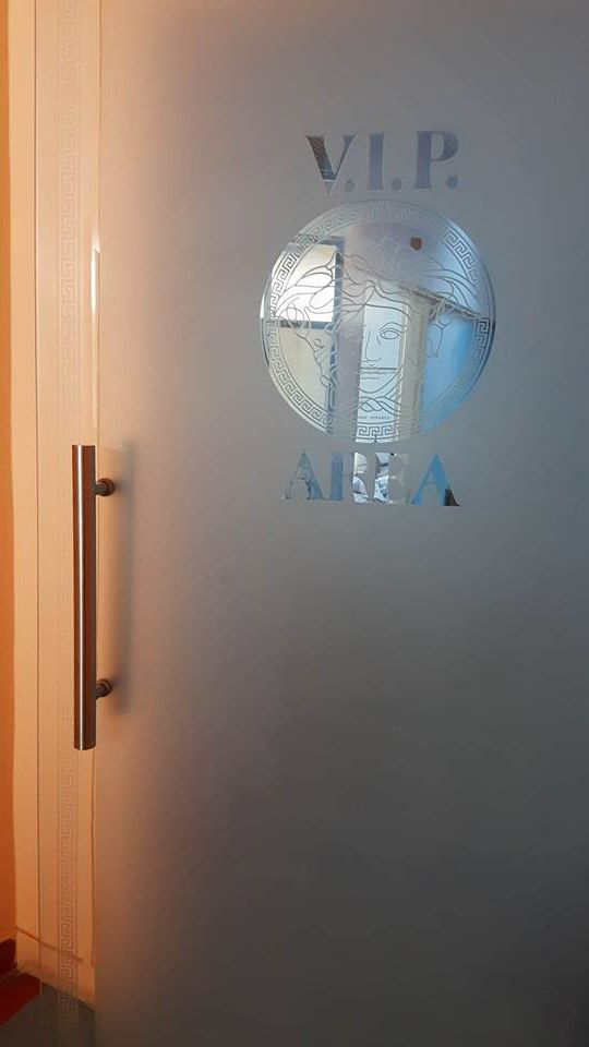 Pe ușa rezervei de lux ei au văzut, mare și aurit, logo-ul de la Versace.