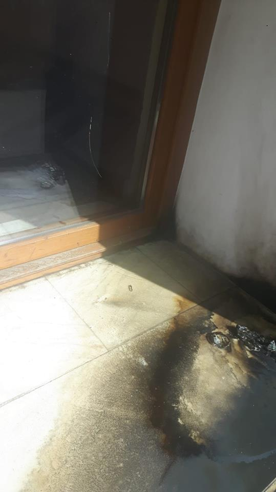 La intrarea în sediu au fost puse două sticle incendiare care au explodat.