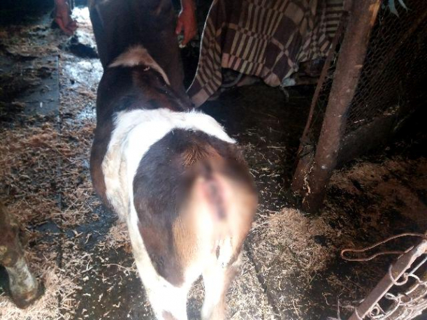 „Am dus vaca la tauri, dar se pare că s-a prins sămânţa de la un taur din al şaptelea neam de-al ei. Deci viţica s-a aruncat la al şaptelea ei neam. Nu are ochi şi nici coadă. La ambii ochi nu are globul ocular. Are doar pieliţa de deasupra şi genele. De aceea şi la oameni se spune că nu e bine să te căsătoreşti cu veri sau alte neamuri, că ies anomalii la copii. Aşa şi la animale. Asta este explicaţia că viţica s-a născut fără ochi şi fără coadă. Nu vede nimic, săraca. Îi dau lapte cu biberonul numai în locul de ea ştiut. Mai am două vaci acasă. E o explicaţie ştiinţifică, nu e nicio minune de la Dumnezeu’, a spus proprietarul animalului.
