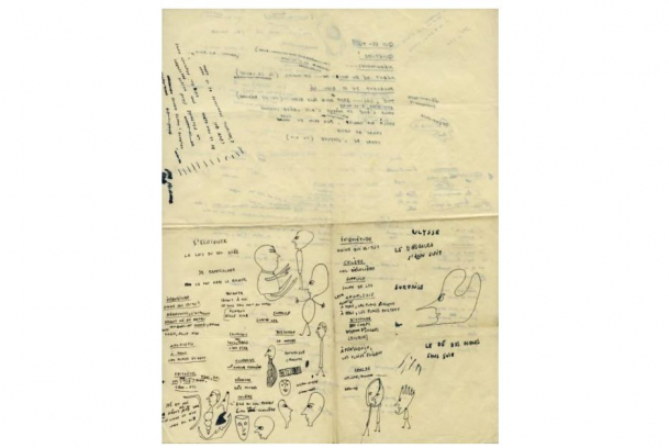 Manuscrisul poetului Gherasim Luca licitat la Paris conţine două pagini de jocuri de cuvinte. Acestea sunt ilustrate cu o serie de chipuri realizate de Luca în cerneală.