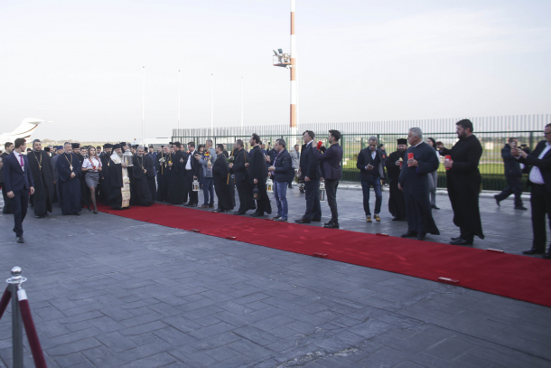 Ea a fost adusă, sâmbătă seară, de o delegaţia Patriarhiei Române, condusă de PS Timotei Prahoveanul, episcop-vicar al Arhiepiscopiei Bucureştilor, care a adus-o la Bucureşti cu un avion închiriat.