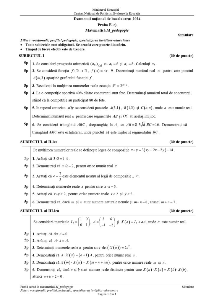 Simularea probei obligatorii de la Examenul de Bacalaureat a avut loc marți, 5 martie. Pentru elevii de la filiera teoretică, profil real (mate-info, științele naturii), filiera vocațională (militar) și cea tehnologică, a fost vorba despre simularea la Matematică, potrivit Edupedu.ro.