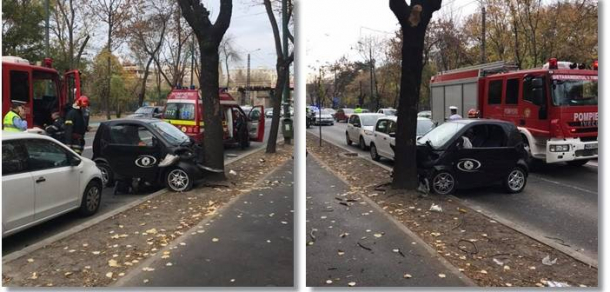 O maşină tip Smart s-a izbit de un copac, în urma unui accident rutier petrecut pe un bulevard din Timişoara.