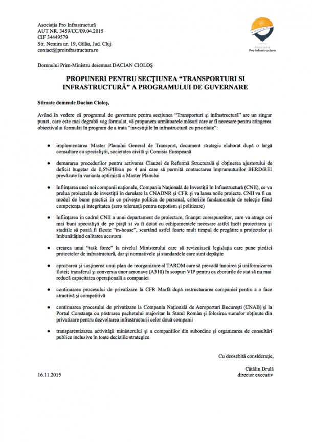Programul de guvernare al premierului desemnat Dacian Cioloș nu este pe placul Asociației Pro Infrastructura care consideră că Transporturile sunt prezentate succint. (Detalii AICI)