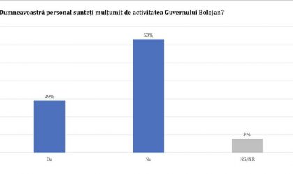 Guvernul condus de Ilie Bolojan primește, la rândul său, o evaluare modestă din partea bucureștenilor: doar 29% dintre participanți declară că sunt mulțumiți de activitatea executivului, în timp ce 63% se declară nemulțumiți.