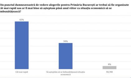 În privința alegerilor, 62% dintre respondenți doresc ca scrutinul să fie organizat cât mai rapid, fără a aștepta o eventuală îmbunătățire a situației economice, în timp ce 34% consideră că ar fi mai bine să se amâne până anul viitor.