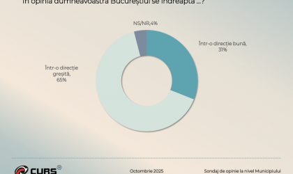 Întrebați ce părere au despre traiectoria Capitalei, mai mult de jumătate dintre respondenți (65%) au spus că Bucureștiul se îndreaptă într-o direcție proastă. Doar 31% consideră că drumul pe care îl urmează orașul este unul bun, benefic.