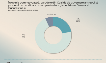 Pe de altă parte, 71% dintre respondenți consideră că coaliția de Guvernare nu ar trebui să propună un candidat comun pentru funcția de Primar General al Capitalei.