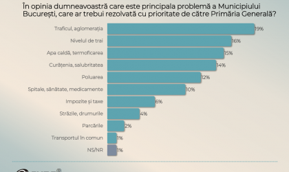 Când vine vorba despre principala problemă cu care se confruntă Capitala, cei mai mulți (19%) au considerat că este „traficul, aglomerația”. Topul este urmat de „nivelul de trai” (16%) „apa caldă, termoficarea” (15%), „curățenia, salubritatea” (14%), „poluarea” (12%). La coada clasamentului se află transportul în comun, pe care doar 1% dintre respondenți îl consideră principala problemă a orașului.