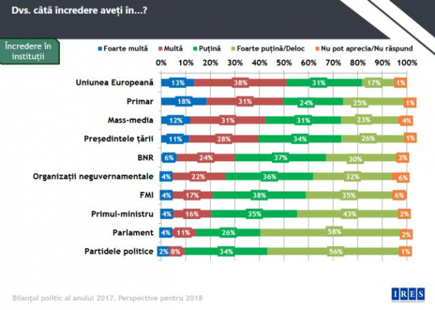 Cel mai putin de incredere au fost evaluate partidele politice, cu o cota de 10 procente.