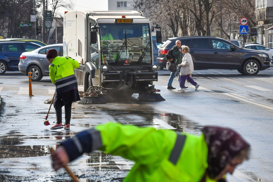 Pe străzile secundare se mătură și se spală mecanizat, dar și manual, se aspiră parcările de lângă blocuri.